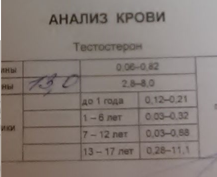 На курсе поймал дика. (800 теста + 400 дека+ 40 метан) = до курса не делал анализы(наверно они были не лучшими).