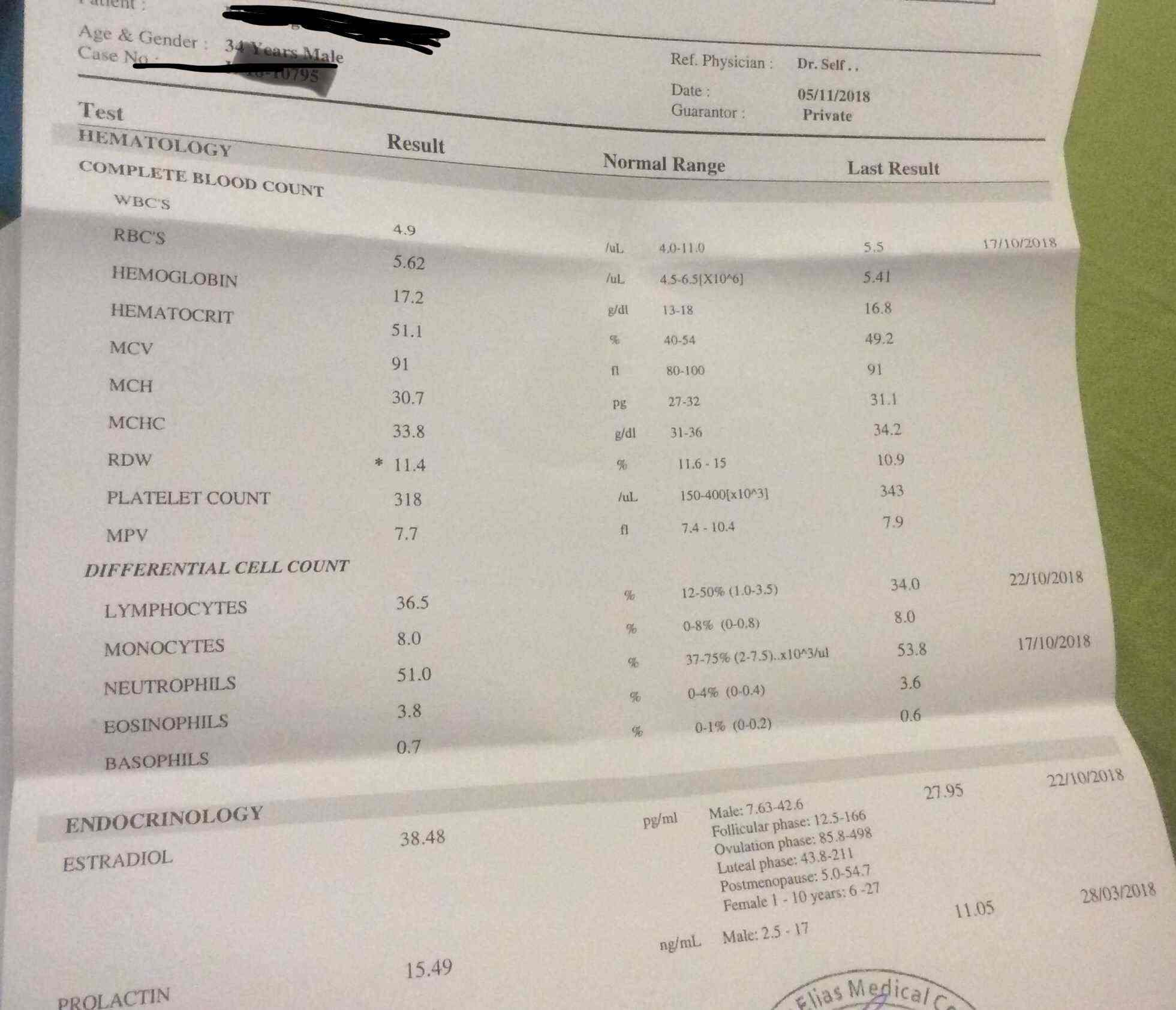 тестостерон в нижних рефах -- это конечно плохо, но не показатель.