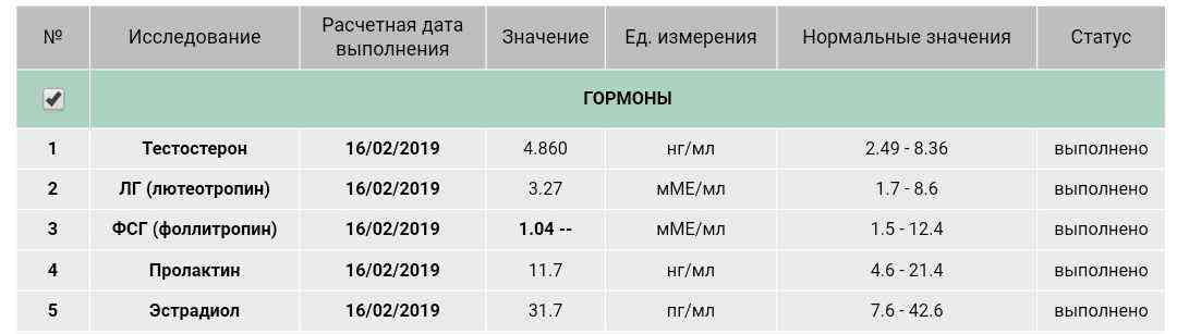 Анализы до, во время, после курса и пкт