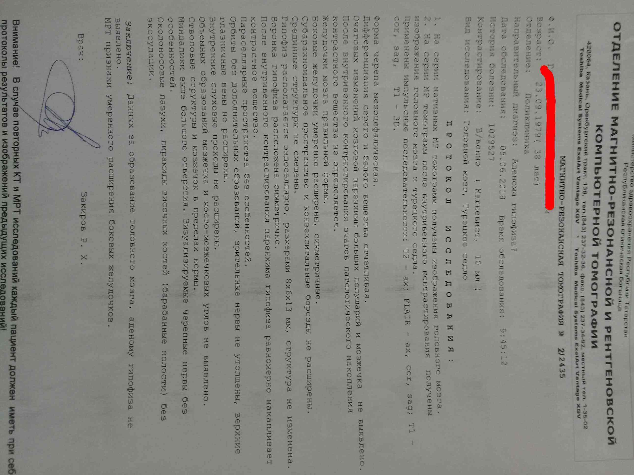 МРТ гипофиза проходил?
