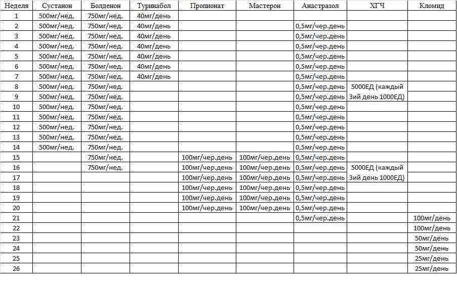Всем добрейшего вечера! Есть мысль сообразить первый длинный курс. Наброски прикрепил в табличке ниже. Собственно вопрос, что скажете по дозировкам, есть ли смысл заканчивать курс на коротком эфире и масте? Лет мне 35, вес 90кг.